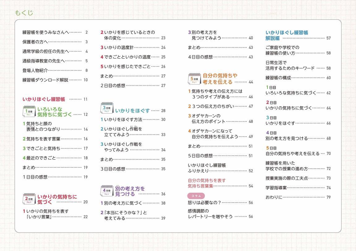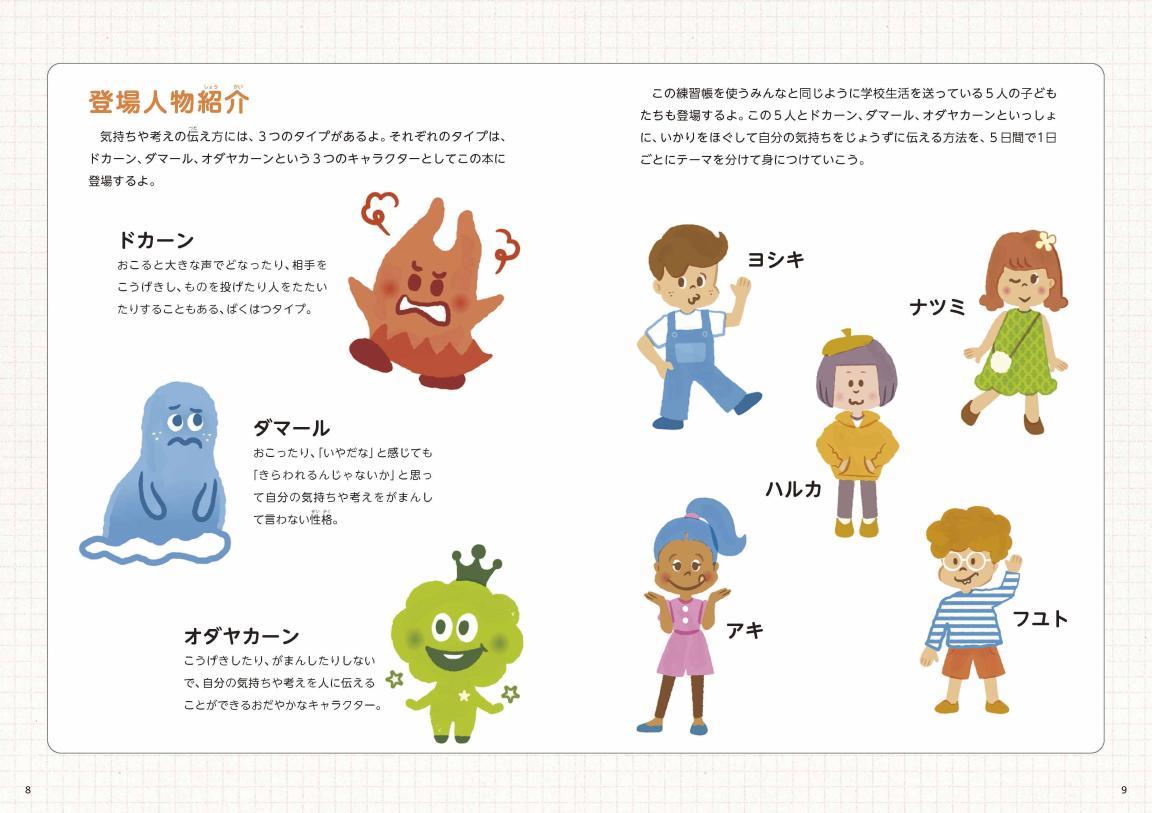 構成は、マンガとイラストが満載かつ5日間で1日ごとにテーマを分けて取り組める「練習帳」と、後半の「解説」の二部から成る。80ページのコンパクトな本なので、家庭では親子で、学校ではクラスの仲間と、飽きずに楽しく取り組める。