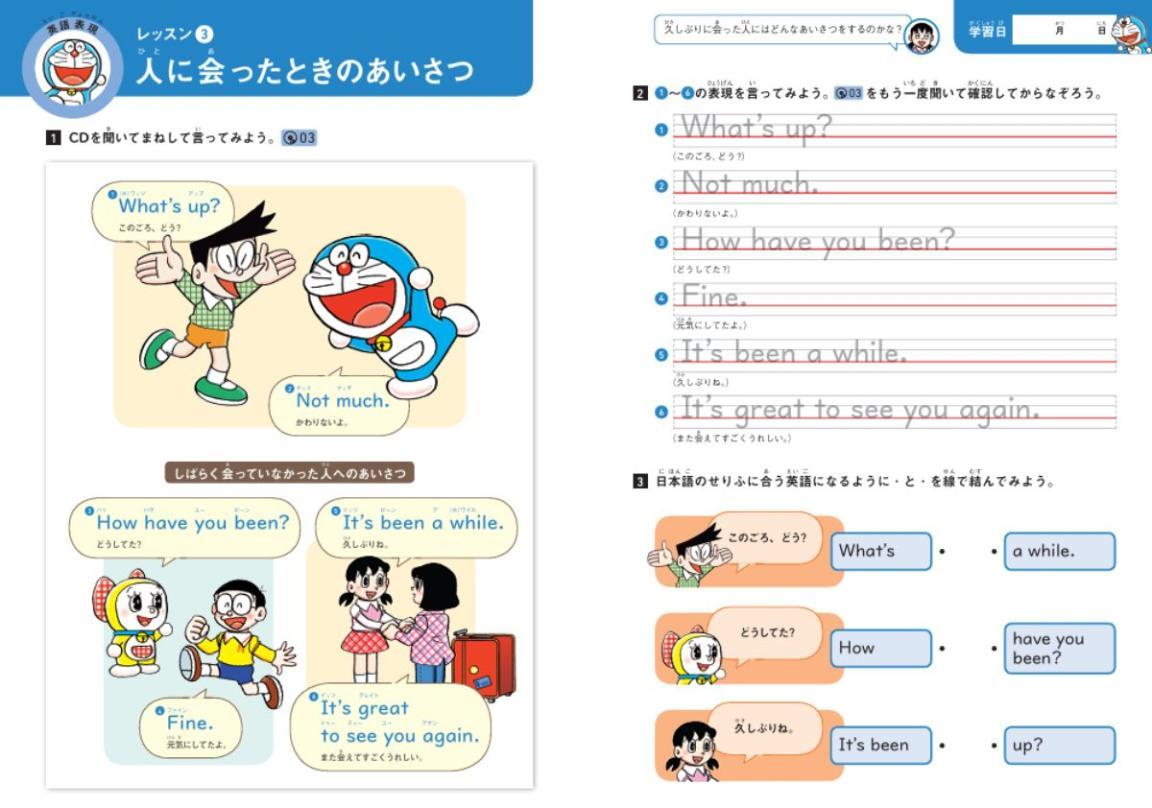 ▲『ドラえもんはじめての英語ドリル 基本の英語表現』より