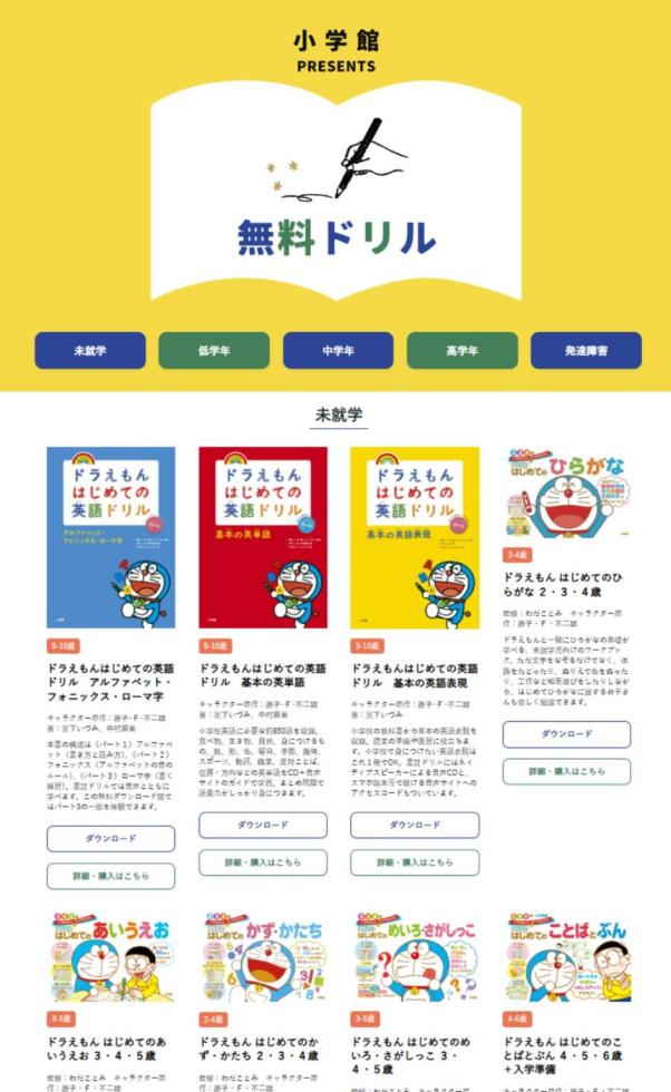2025年4月、『ドラえもん はじめての英語ドリル』シリーズから、「アルファベット・フォニックス・ローマ字」「基本の英単語」「基本の英語表現」の学習コンテンツがあらたに3点加わり、全53種のドリルをお試しできるようになりました。