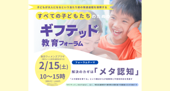すべての子どもの未来をより良く変えるため、彼らの「才能を発揮できる自己実現」を目指す特定非営利活動法人 翔和学園(本社:東京都中野区、学園長:伊藤寛晃)は、2025年2月15日(土)に「第5回・ギフテッド教育フォーラム」開催いたします。