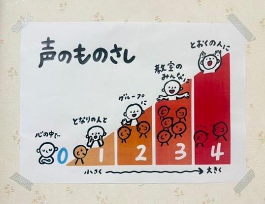 ▲松実高等学園初等部の教室に掲示している「声のものさし」
