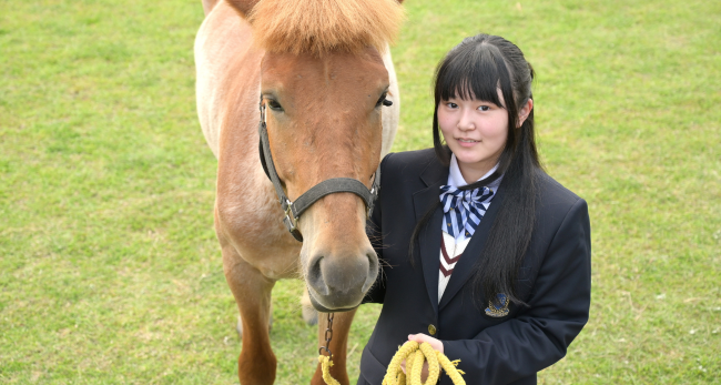 宮崎県串間市には、天然記念物に指定されている在来馬「御崎馬(みさきうま)」が生息しています。その中から天然記念物の指定を外れた馬が本校に迎えられました。御崎馬は穏やかな性格で比較的小柄であるため、人との関わりにも適しており、生徒とのふれあい活動にも最適な存在です。