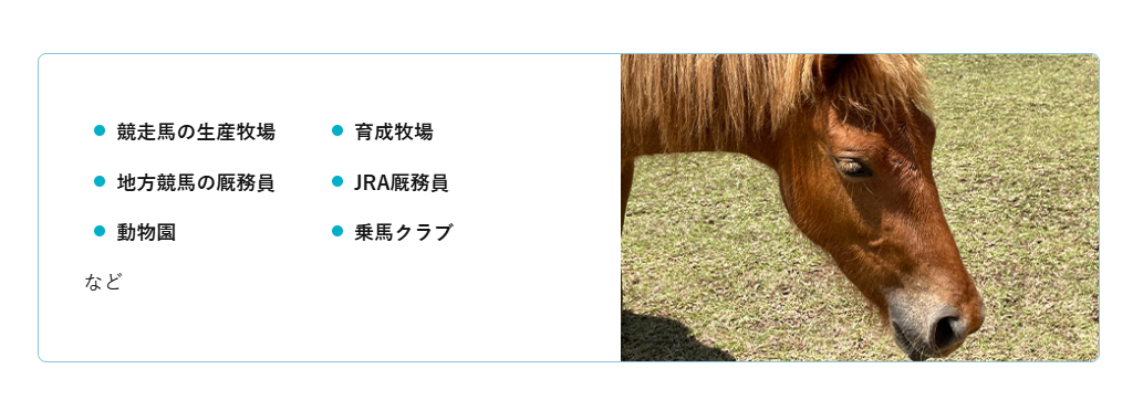 ・馬の世話(ブラッシング、餌やり、厩舎の清掃)