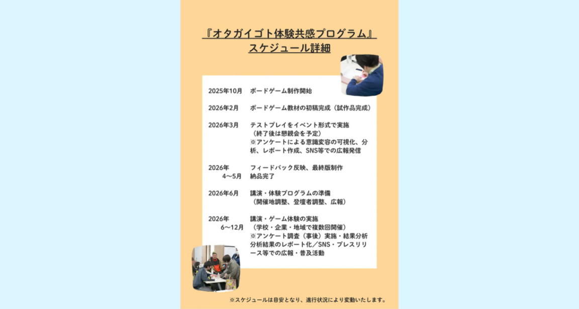 新たな共感啓発型プロジェクト『オタガイゴト体験共感プログラム』の実現に向けた支援募集を開始