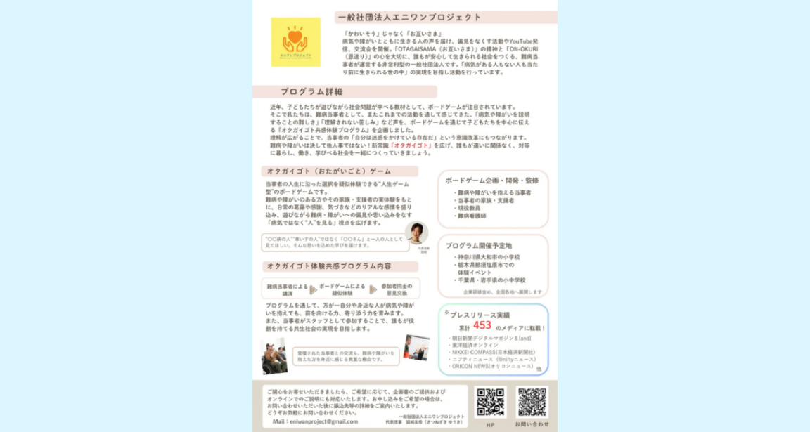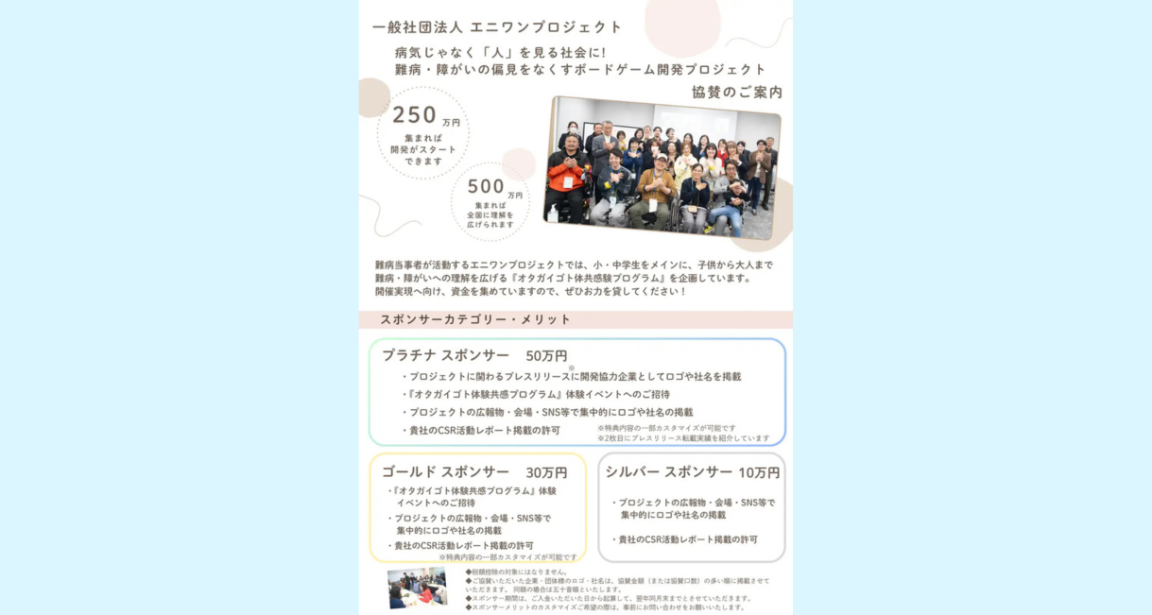 病気や障がいとともに生きる人の声を届け、偏見をなくすボードゲーム制作やYouTube発信、交流会を開催。
