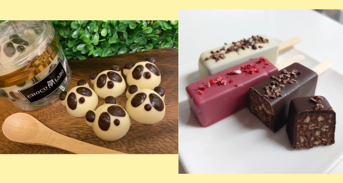 ▲「ショコラボdeパンダブラン(左)」と「スティックニブクランチ(右)」
