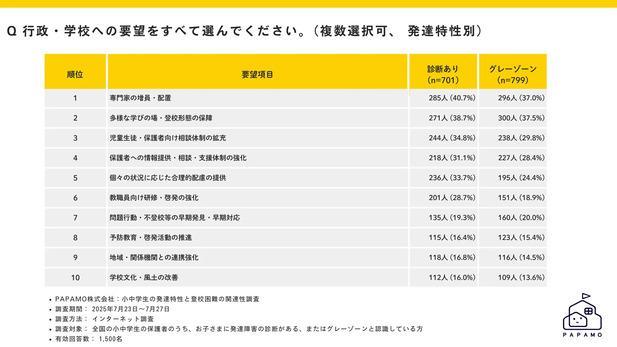▪︎発達特性によって行政・学校への要望に差異