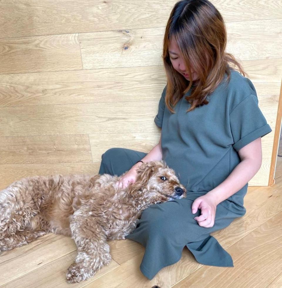 ▲赤ちゃんがいるM子さんのお腹に寄り添うちゅら