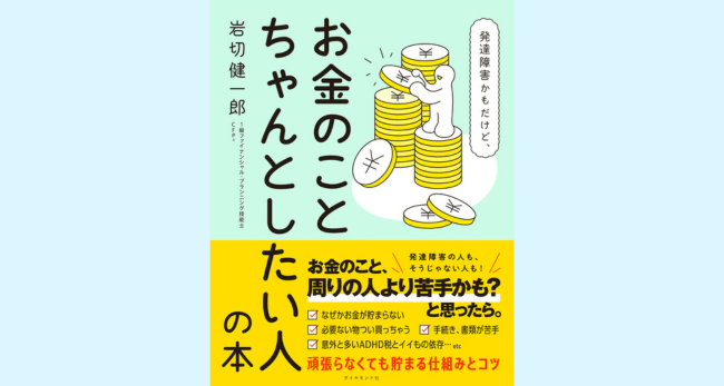 1級ファイナンシャル・プランニング技能士でADHD当事者の著者による、頑張らなくてもお金とラクに付き合えるようになる本、『発達障害かもだけど、お金のこと ちゃんとしたい人の本』(岩切健一郎:著)が2025年9月17日にダイヤモンド社から発売されます。