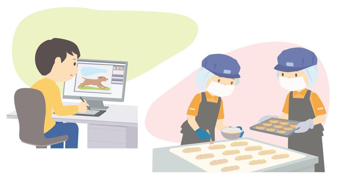 「就労継続支援A型」は、事業所と雇用契約を結ぶことを前提とします。そのため、定められた給与が支払われます。就労しながら、あわせて必要な訓練も受け、就職のための知識・能力を身につけていきます。さらに「就労移行支援」を経て、一般企業への就職ができるように支援を受けることもできます。