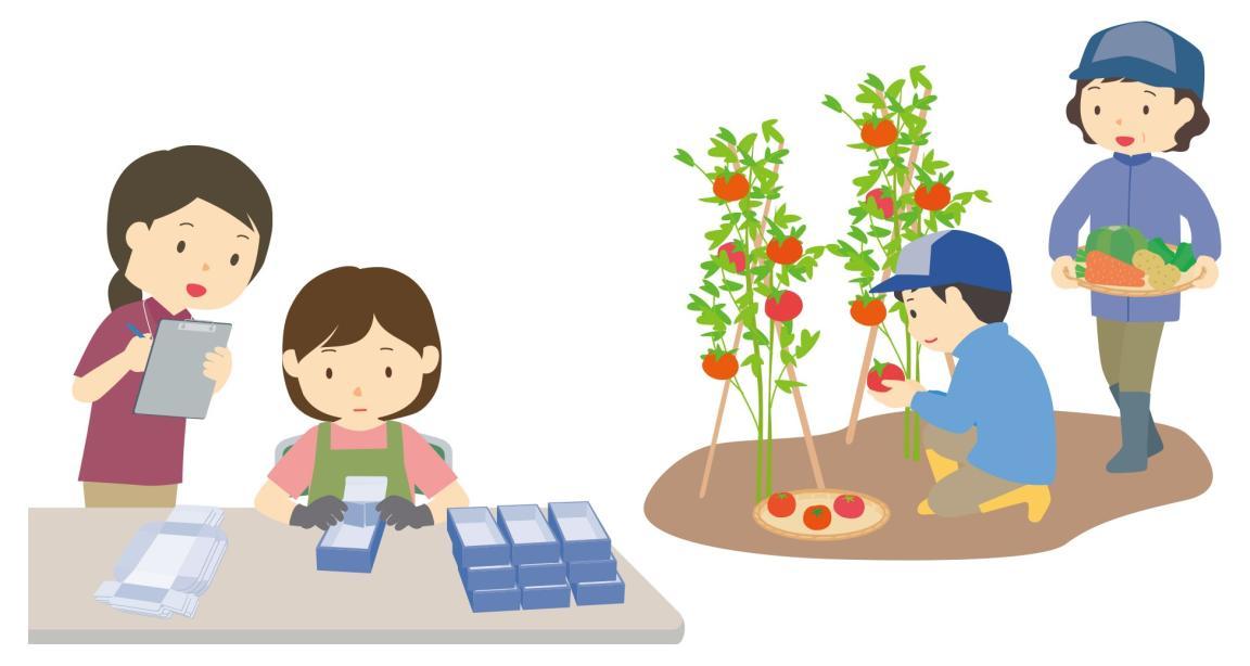 利用者には、作業訓練などを通じて生産活動を行ってもらい、できたものに対して賃金が支払われるしくみ(工賃)がとられています。ゆくゆくは、訓練を積んだあとに、就労継続支援A型への移行や一般企業への就労移行など、段階的に次のステップをめざすこととなります。