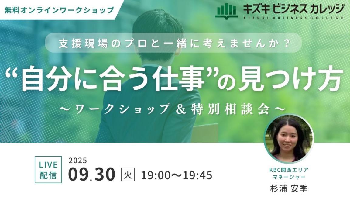 就労移行支援事業所・キズキビジネスカレッジ(KBC)は2025年9月30日(火)に、「自分に合った仕事の見つけ方」をテーマにした無料オンラインワークショップを開催します。