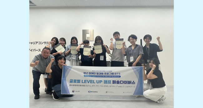 総合人材サービスのパーソルグループ傘下で障害者雇用支援事業を手掛けるパーソルダイバース株式会社(本社:東京都港区、代表取締役社長:渡部 広和 以下パーソルダイバース)は、2025年9月9日から11日までの3日間、韓国で人材サービス事業を展開する同グループのPERSOL Korea, Ltd.(本社:韓国ソウル特別市、代表:YouMe Jeon 以下パーソルコリア)と連携し、韓国の障害のある学生を対象とした就業体験支援プログラム「BTSグローバル LEVEL UP キャンプ with パーソルダイバース」を実施しました。本プログラムは、障害のある若者が自己理解を深め、多様なキャリアやはたらき方を学ぶ機会を提供するものです。