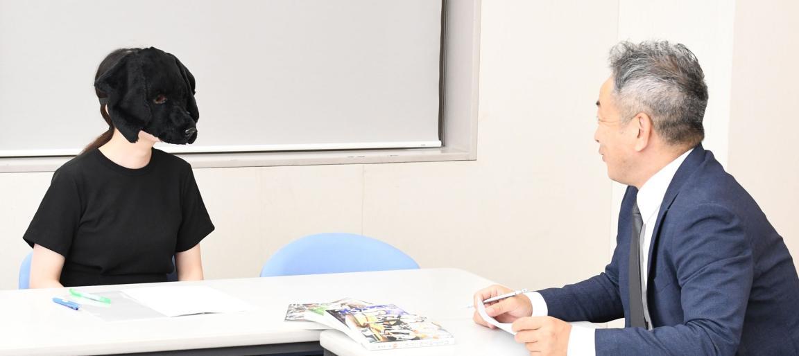 ※泥ノ田さんのご意向でペンネームをイメージさせた黒い犬のマスクをつけて登場いただいています(ペンネーム:マンガを描くときのご自身がまるで泥の中でもがく犬のイメージだというところから表現されたそう)。