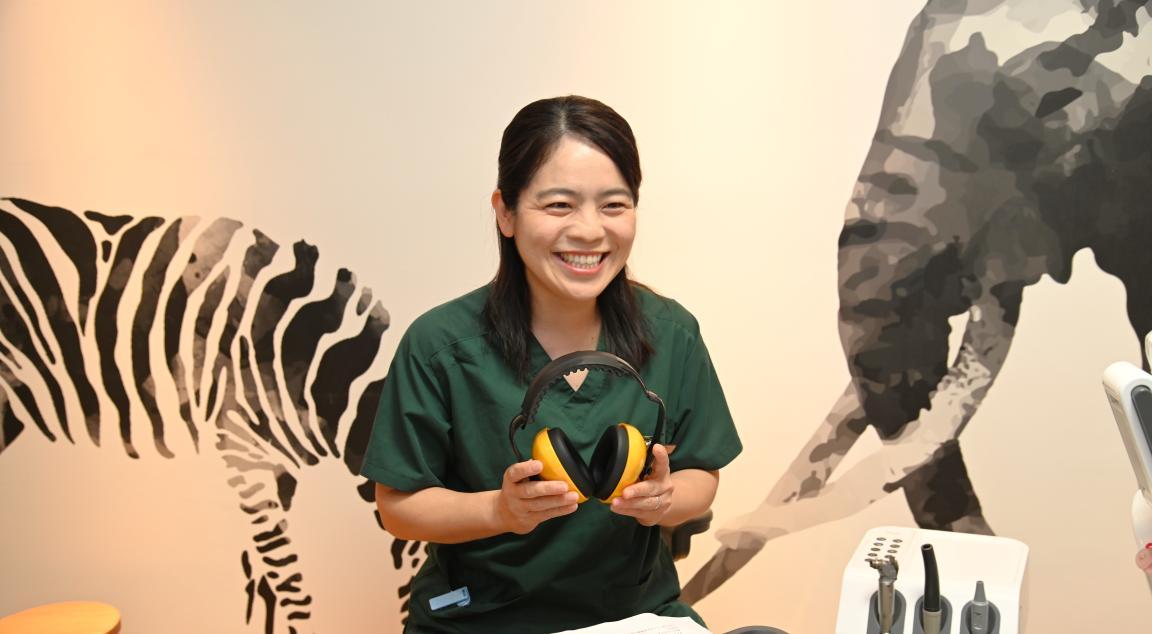 ▲聴覚過敏のお子さんにはイヤーマフをしてもらい、治療を行うこともある