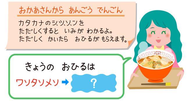 ほかにも、濁点を抜いた暗号文や、拗音(小さな「ゃ」「ゅ」「ょ」)を抜いた暗号文などをつくってみるのもいいかもしれません。
