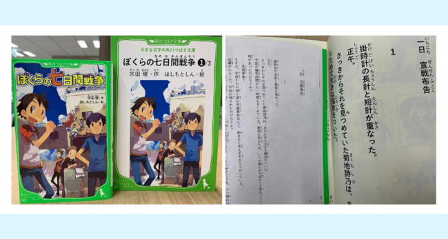 2024年より、視認性の高い大きな文字(22ポイント)と読みやすいフォントを採用した、有限会社読書工房の「読書工房めじろーブックス」のシリーズに「角川つばさ文庫」も加わりました。学校図書館・公共図書館を中心に好評を得ています。