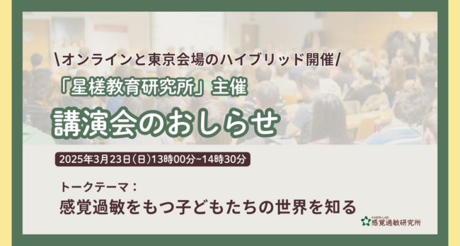 このたび、2025年3月23日(日)に開催されるNPO法人星槎教育研究所主催の講演会「感覚過敏をもつ子どもたちの世界を知る」において、感覚過敏研究所所長・加藤路瑛が登壇し、感覚過敏の特性や支援についてお話しします。