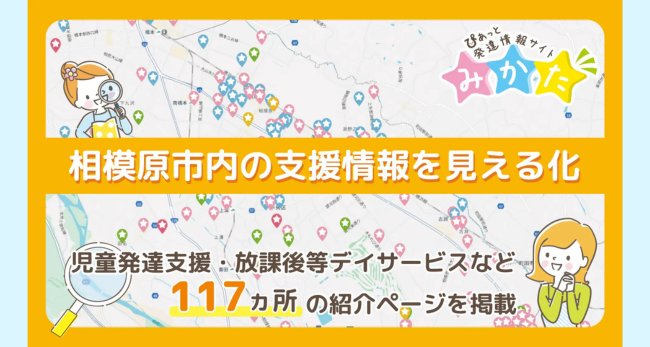 NPO法人ぴあっと(神奈川県相模原市)が運営する「ぴあっと発達情報サイトみかた」は、相模原市内の児童発達支援・放課後等デイサービス・保育所等訪問支援・障害児相談支援の合計117ヵ所の事業所情報を掲載しました。
