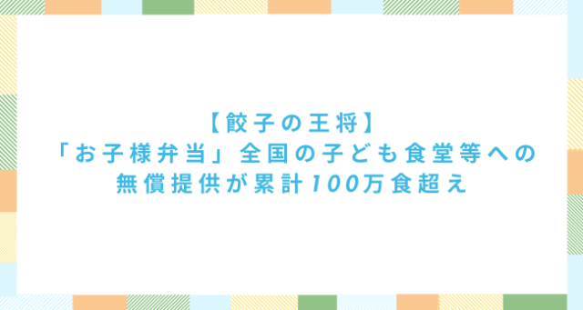 【餃子の王将】「お子様弁当」全国の子ども食堂等への無償提供が累計100万食超え