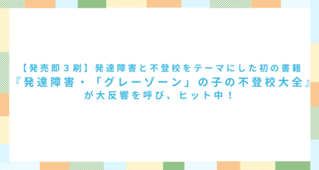 【発売即3刷】発達障害と不登校をテーマにした初の書籍『発達障害・「グレーゾーン」の子の不登校大全』が大反響を呼び、ヒット中!