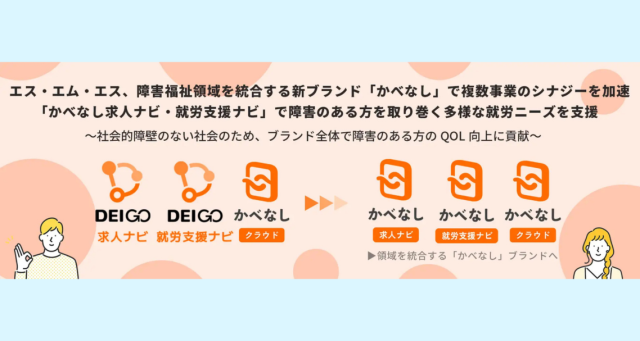エス・エム・エス、障害福祉領域を統合する新ブランド「かべなし」で複数事業のシナジーを加速。「かべなし求人ナビ・就労支援ナビ」で障害のある方を取り巻く多様な就労ニーズを支援